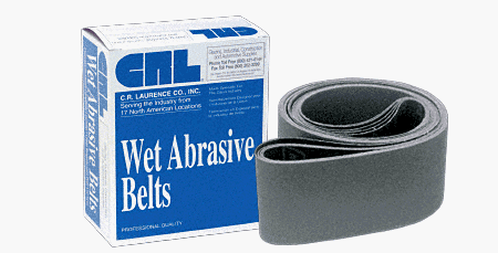 Fast Grinding 100% Polyester Backed Belts in up to 14 Grits from 60X to CORK in Seven Popular Sizes Special Sizes and Grits Available on Request CRL Wet Abrasive Belts have a 100 percent polyester backing, so you can use them wet or dry. They are available in grits from 60X (Super Coarse) to CORK (Polishing) to fit most any upright belt sanding machine. Grit: 180X Size: 3 in x 84 in (76 mm x 2,134 mm) Additional Product Information: Seven Standard Sizes: 4 x 64 inch (102 x 1,626 millimeter) 4 x 82 inch (102 x 2,083 millimeter) 3 x 84 inch (76 x 2,134 millimeter) 4 x 84 inch (102 x 2,134 millimeter) 4 x 106 inch (102 x 2,692 millimeter) 4 x 118 inch (102 x 2,997 millimeter) 4 x 132 inch (102 x 3,353 millimeter) Most Popular Belts for Glass, and Examples of Their Use: 60X - Extra Rough: Fast Glass Removal (Mitered Edge) 80X - Rough: Quick Contouring (Auto Glass Edge) 120X - Smooth: Seaming and Polishing (Desk Top Edge) 220X - Extra Smooth: Fine Frosted Finish (Glass Shelf Edge) 400X - Fine: Satin Finish (Opaque Edge) CORK - Polish: Smooth Luster Finish Five belts per box, except CORK, which are sold individually.